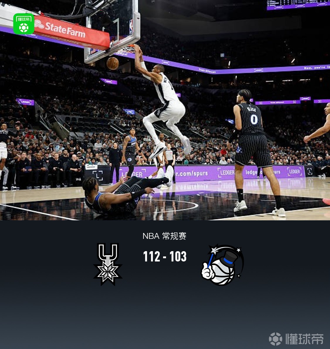 马刺6人上双112-103力克魔术,文班亚马25分8板5帽