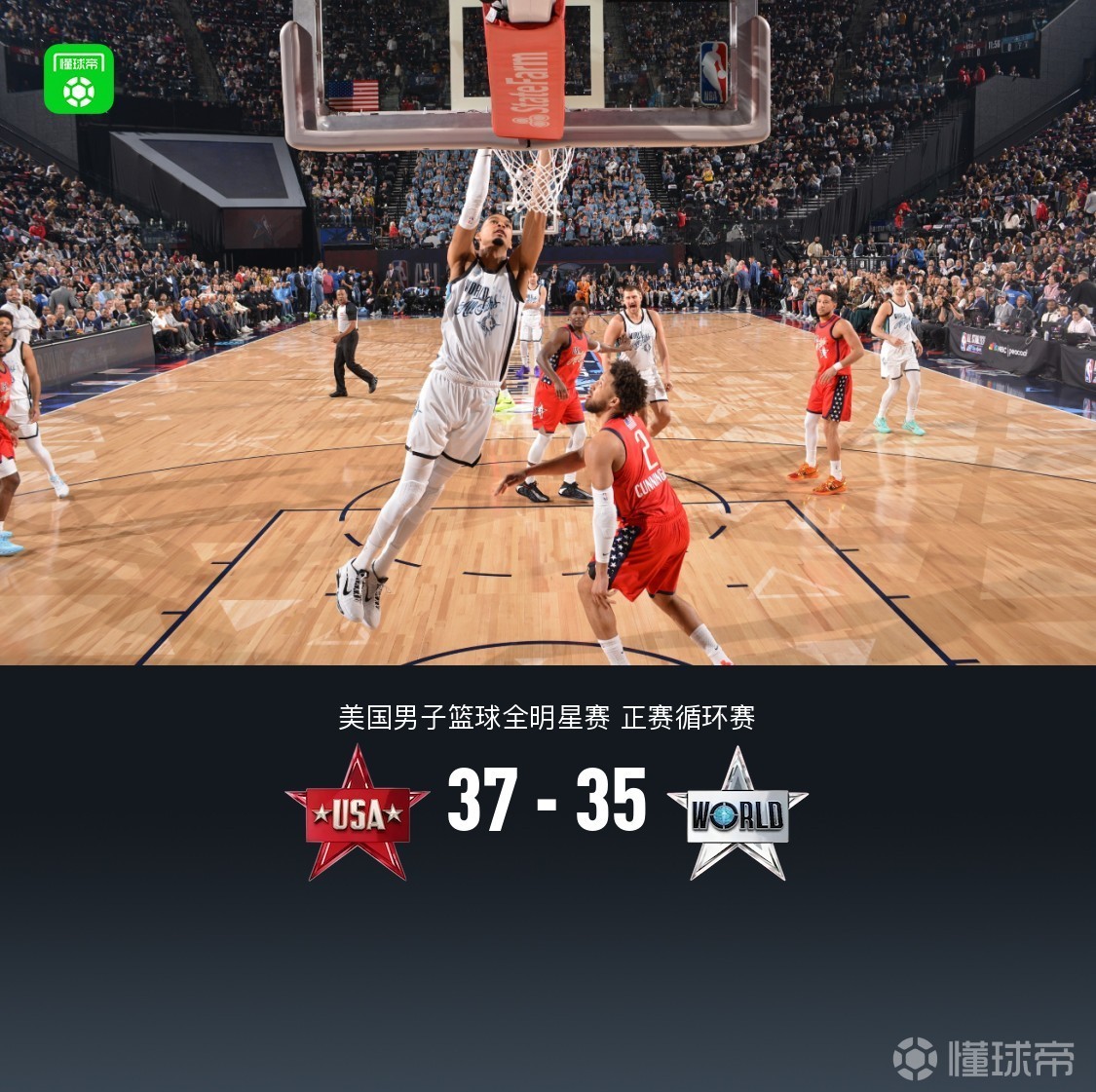 美国星辰队爱德华兹13分2板,德文-布克5分1板4助;世界队文班亚马14分6板,唐斯10分1板。