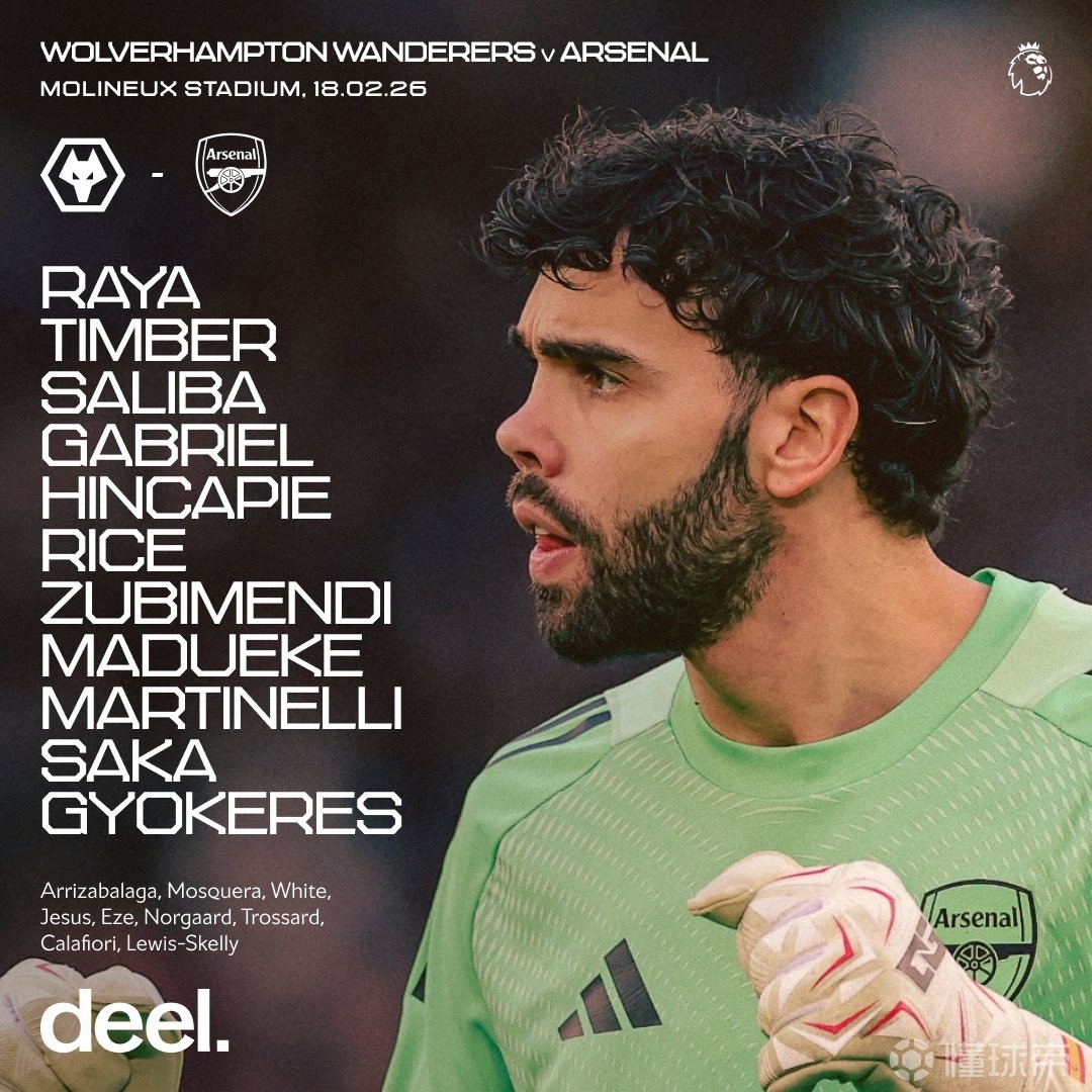 北京时间2月19日凌晨4点,英超联赛第31轮展开一场焦点战役,阿森纳对阵狼队。赛前,双方公布首发阵容。