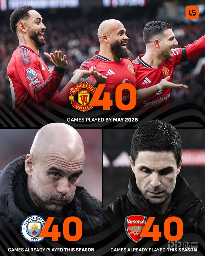 阿森纳、曼城本赛季已赛40场 追平曼联本赛季总场次