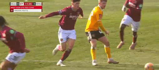 北京时间2月14日英格兰足总杯 第四轮,伯顿对阵西汉姆联。加时赛萨默维尔精彩一条龙内切破门,之后波茨剪刀腿,裁判直接出示红牌。最终西汉姆联1-0战胜伯顿晋级。