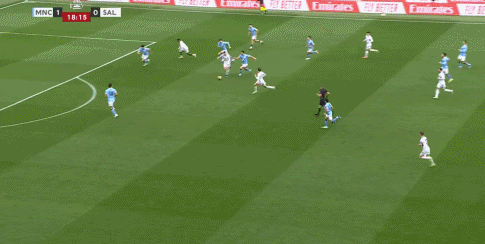 第18分钟,索尔福德城威胁进攻,奥斯特菲尔德打门没踢好